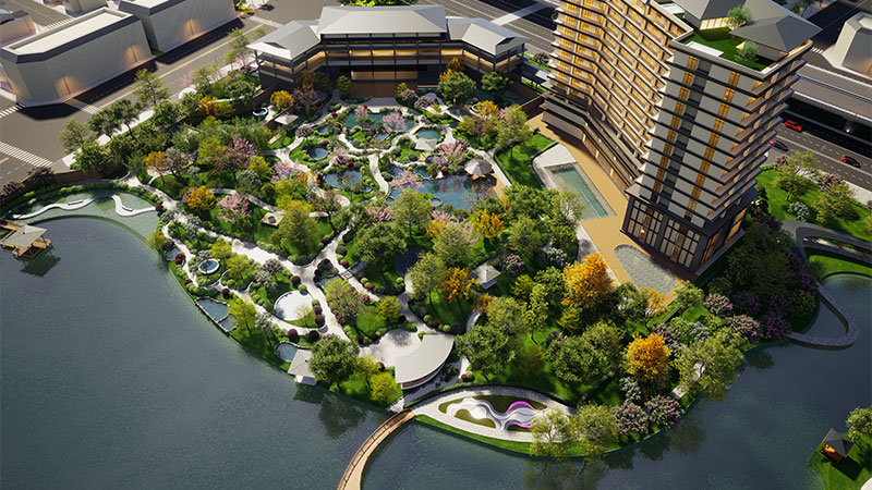 Alluvia Onsen còn được bao bọc bởi hệ thống sông sinh thái rộng lớn và những khu vườn cây cảnh bát ngát trải dài theo phía Đông, Bắc, Tây phân khu. Việc tiếp xúc với diện tích cây xanh & mặt nước rộng lớn, không chỉ mang đến không gian trong lành, thoáng mát, mà còn giúp tạo sự cân bằng & hòa hợp giữa con người với thiên nhiên – Một điều đang thiếu hụt trong cuộc sống công nghệ hiện đại thế kỷ 21. Tại Alluvia Onsen, cư dân không chỉ được thừa hưởng hạ tầng giao thông kết nối thuận tiện, mà còn cả cuộc sống xanh đẳng cấp tựa như đang nghỉ dưỡng mỗi ngày.